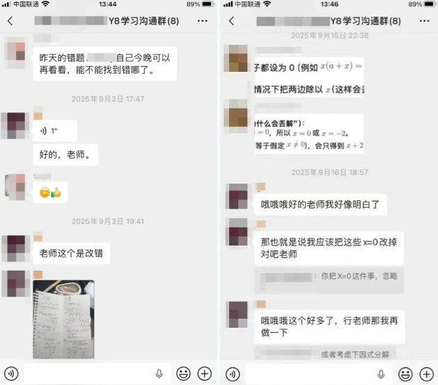 每次她在群里提交作业,助教老师先批改出错题,再由授课老师引导她重新梳理思路。改完之后,必须再次提交,直到真正掌握为止。